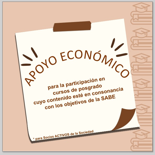 Desde la SABE tenemos el agrado de anunciar que vamos a ofrecer becas de ayuda económica a socios/as que tengan interés en participar de cursos de posgrado cuyo contenido esté en consonancia con los objetivos de la SABE. La convocatoria se realizará dos veces al año y se promoverá una distribución federal y de temática diversa de los cursos beneficiados con becas.